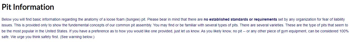 According to The American Gym, a business whose services include the sale and installation of “gym sports equipment”, with a specialty in Spring Floors, which was admittedly… the only resource I could find on the anatomy of soft foam pits, because, according to their article that I will be referencing, “there are no established standards or requirements set by any organization for fear of liability issues.” In fact, neither their article, nor this article written by me, is intended to be used as reference for safe installation or use of a soft foam pit. In their own words, The American Gym is providing this information “only to show the fundamental concepts of (their) common pit assembly.”